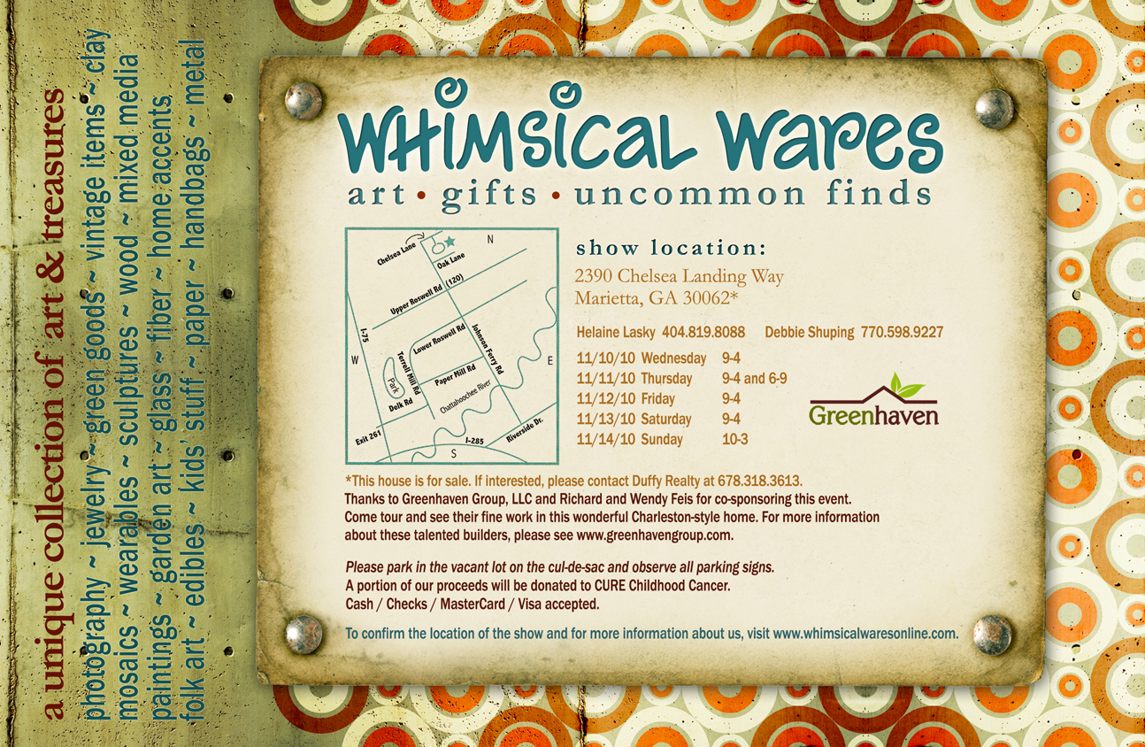 I will also be selling at an event in Atlanta, Georgia. It's called Whimsical Wares and will be held November 10-14.