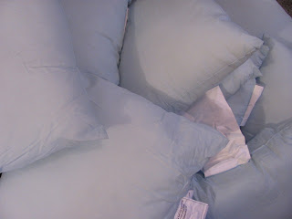 We made our way into the store. Escalator up, stairs up, stairs down. Ahh, we finally get the pillow section. I quickly grab a cart. My plan was for 30 pillows. The last time I did my pillow-run, I got 28. "What?", my friend says, "As long as we're here, you should get 60. Sixty sounds like a nice number."